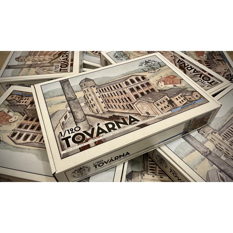 Exkluzivní stavebnice továrny - omezená série, dovýroba posledních 15 ks. Kombinace laser cut, 3D tisku a leptů. Rozměr 570 x 290 x 345 mm.