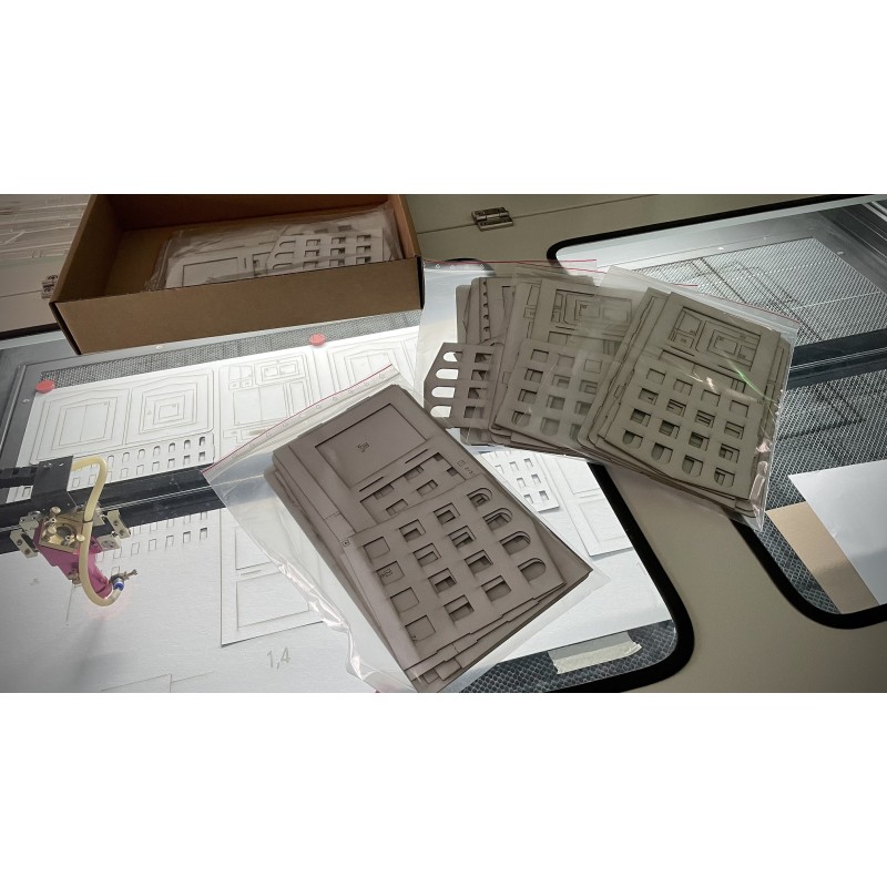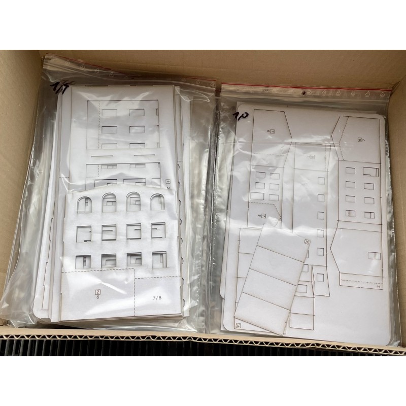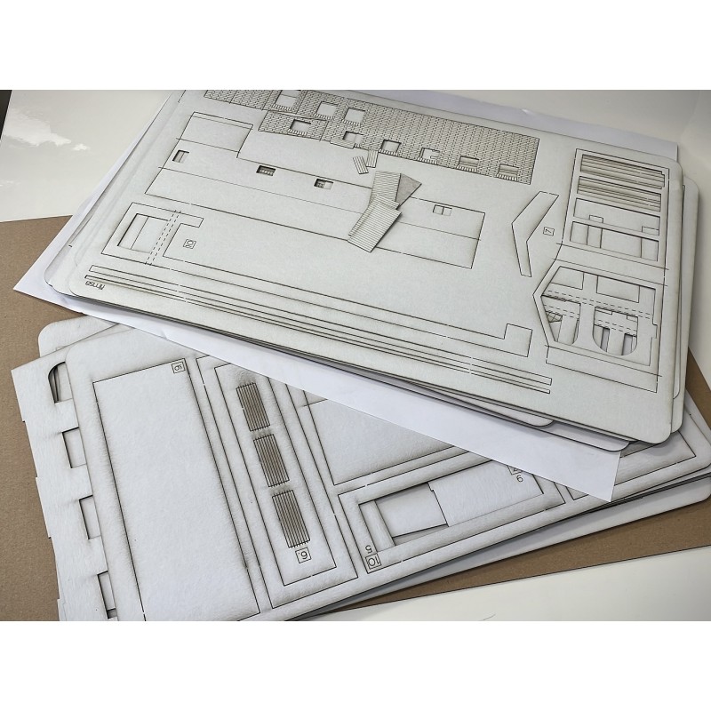 Základ stavebnice tvoří kartonové díly vyřezané laserem, doplněné díly z 3D tisku, leptu a případně dalších materiálů.