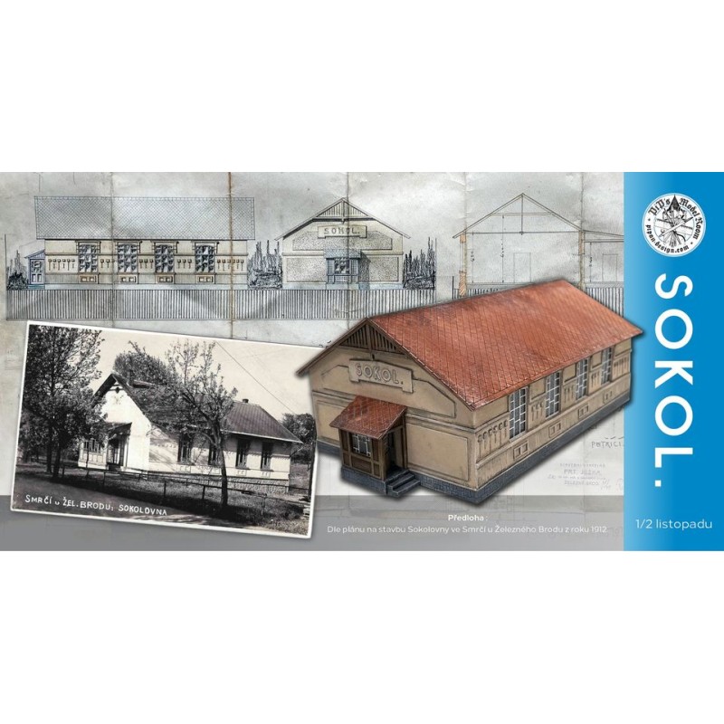 Exkluzivní stavebnice budovy Sokolu - omezená série 30 ks. Kombinace laser cut, 3D tisku a leptů. Rozměr 210 x 182 x v95 mm.