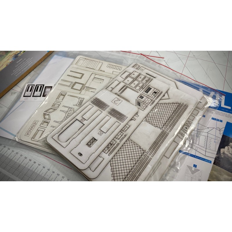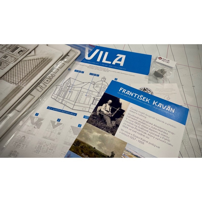 Exkluzivní stavebnice vily - omezená série 30 ks. Kombinace laser cut, 3D tisku a leptů. Rozměr 125 x 150 x 120 mm.