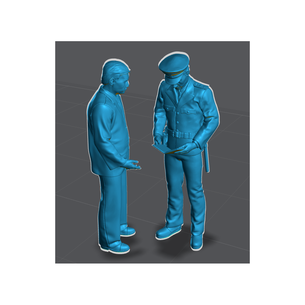 Figurka v dobové uniformě a civilní občan. 3D tisk, nebarveno.