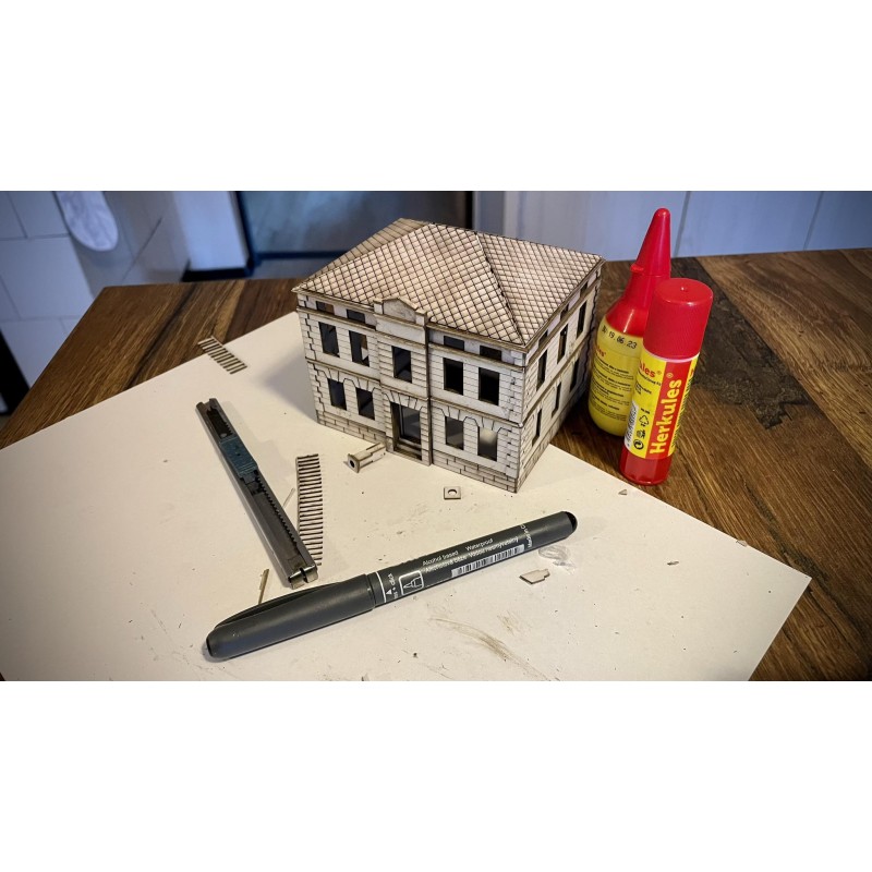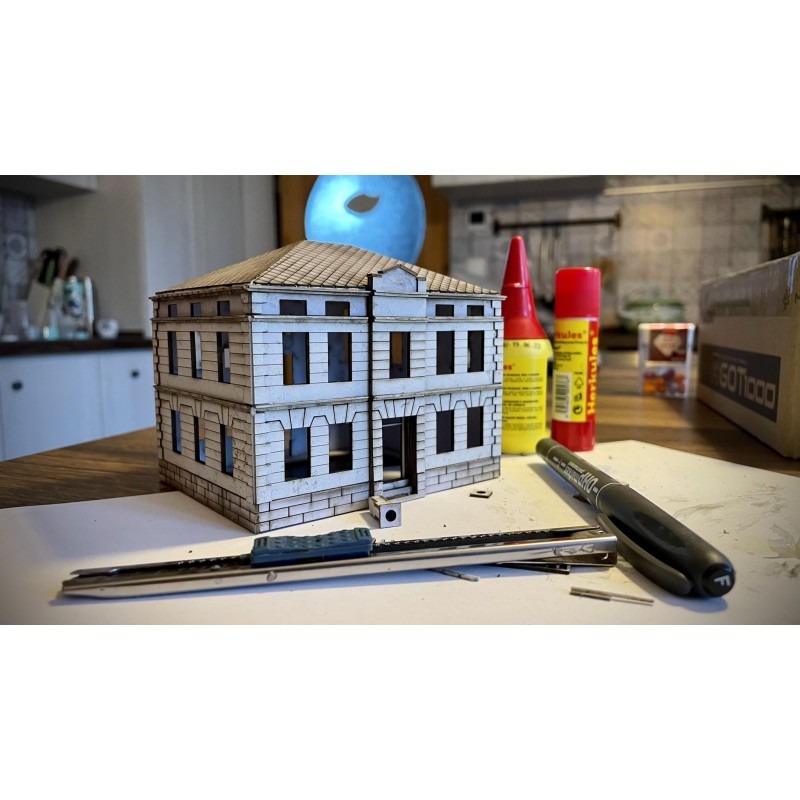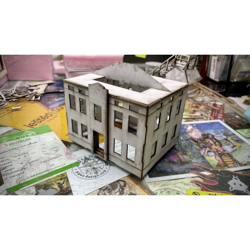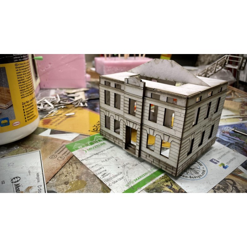 Exkluzivní stavebnice školy / pošty / správní budovy - omezená série 30 ks. Kombinace laser cut, 3D tisku a leptů. Rozměr 100 x 80 x 90 mm.